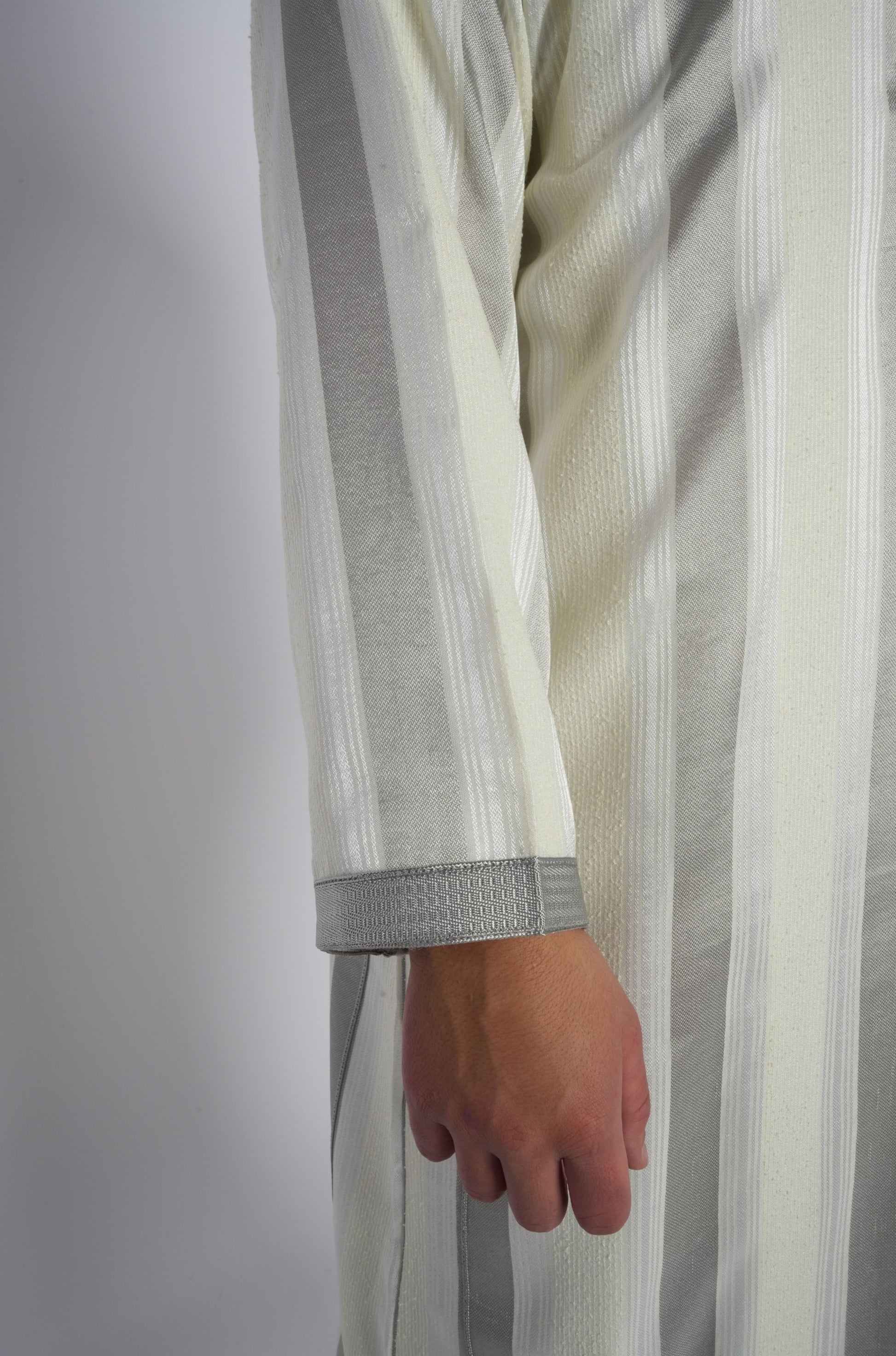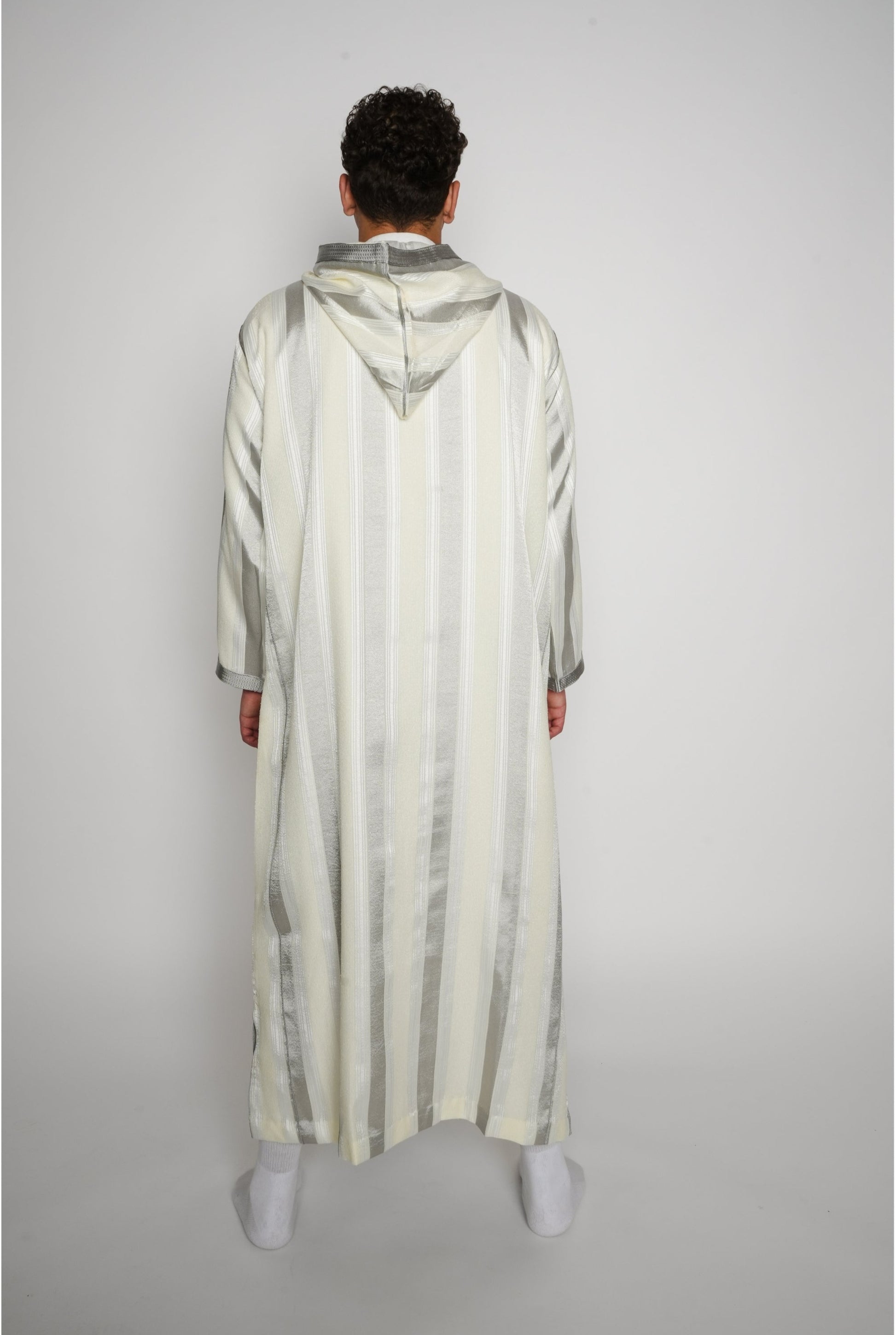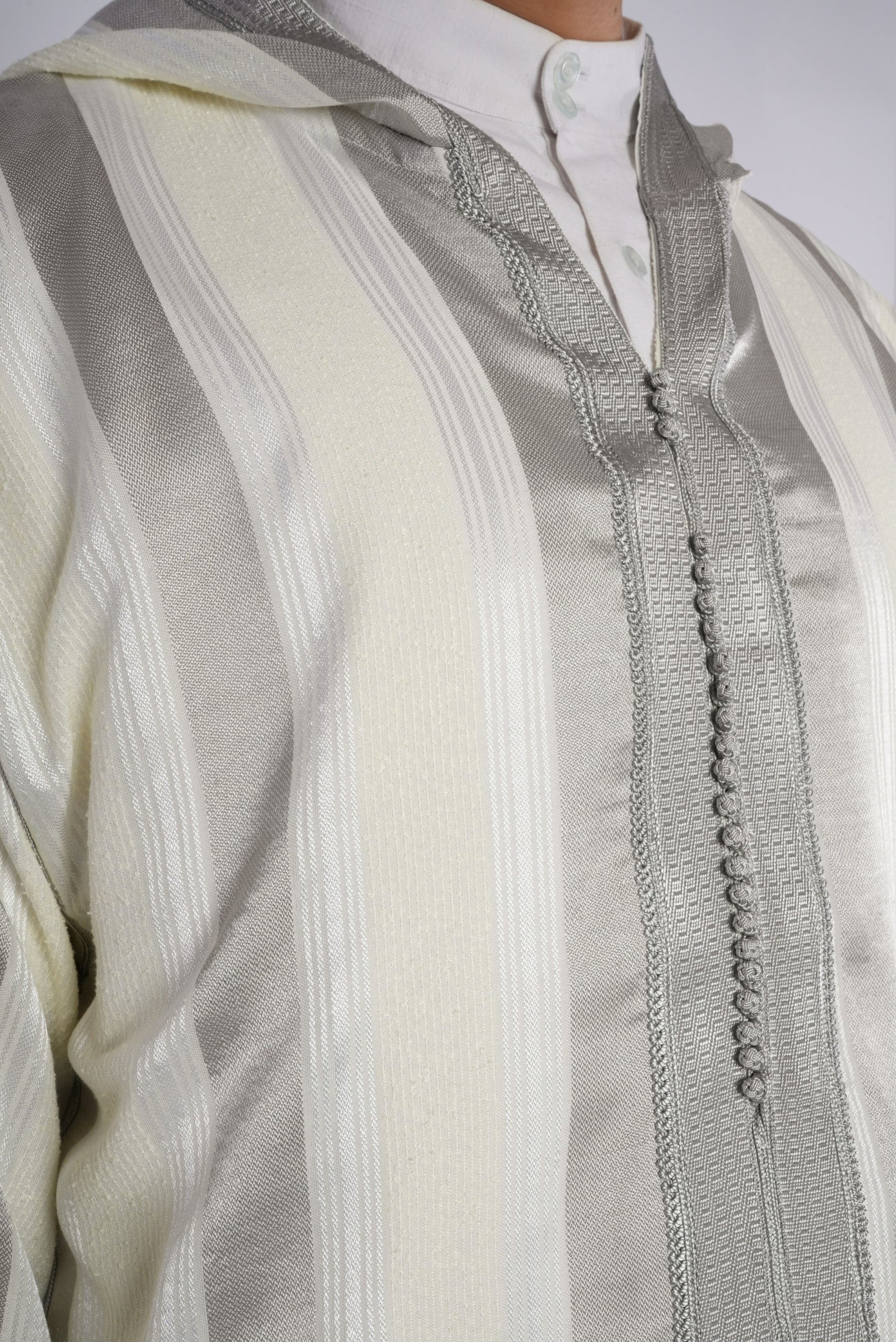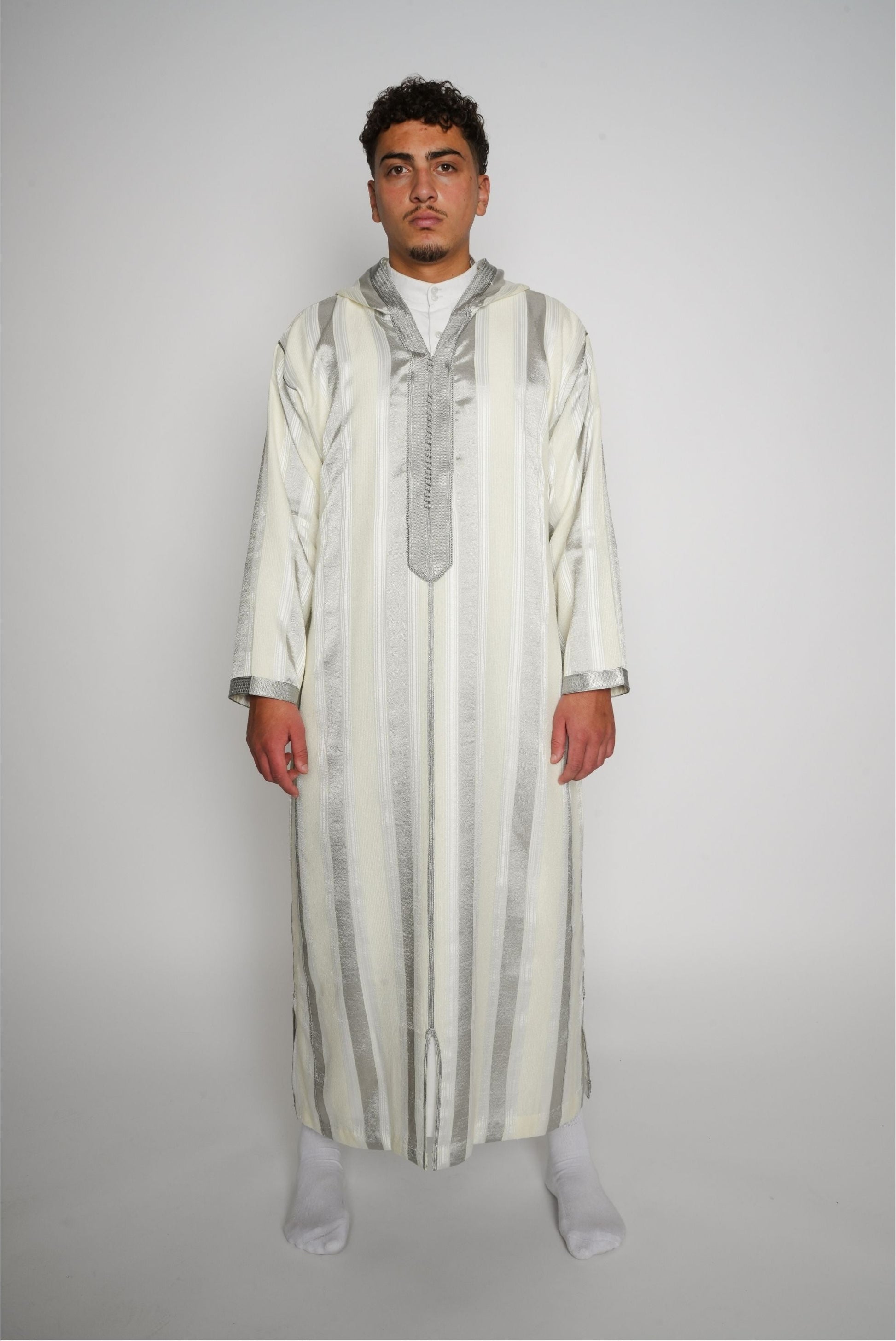 Diese edle Herren-Jallabia wurde speziell für besondere Anlässe entworfen. Ihr leichtes, fließendes Material, die stilvolle Kapuze und die Möglichkeit, sie mit einem weißen Gewand zu kombinieren, machen sie zu einem unvergleichlichen Highlight für jeden, der zeitlose Eleganz mit einem Hauch von Luxus sucht.